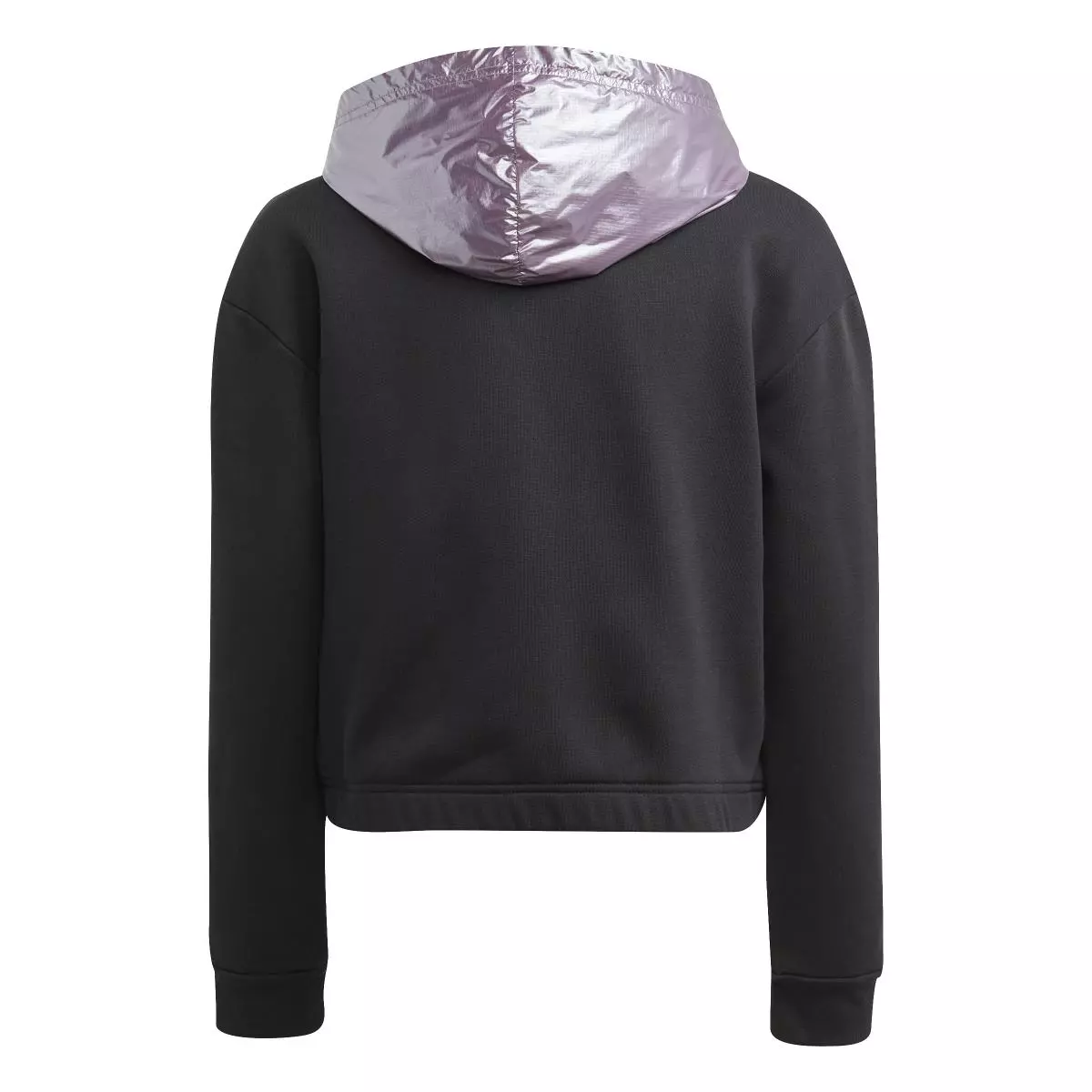 «Ikke la kulden holde deg unna glamouren. Hold deg varm i denne hettegenseren for juniorer. Den blanke, metalliske hetten og en brodert adidas Badge of Sport-logo skaper en luksuriøs stil som skinner, selv om været gjør at du må legge til en jakke ytterst. Lages delvis av resirkulert materiale generert fra produksjonsavfall og husholdningsavfall, for å unngå miljøpåvirkningen av nyproduserte materialer.»