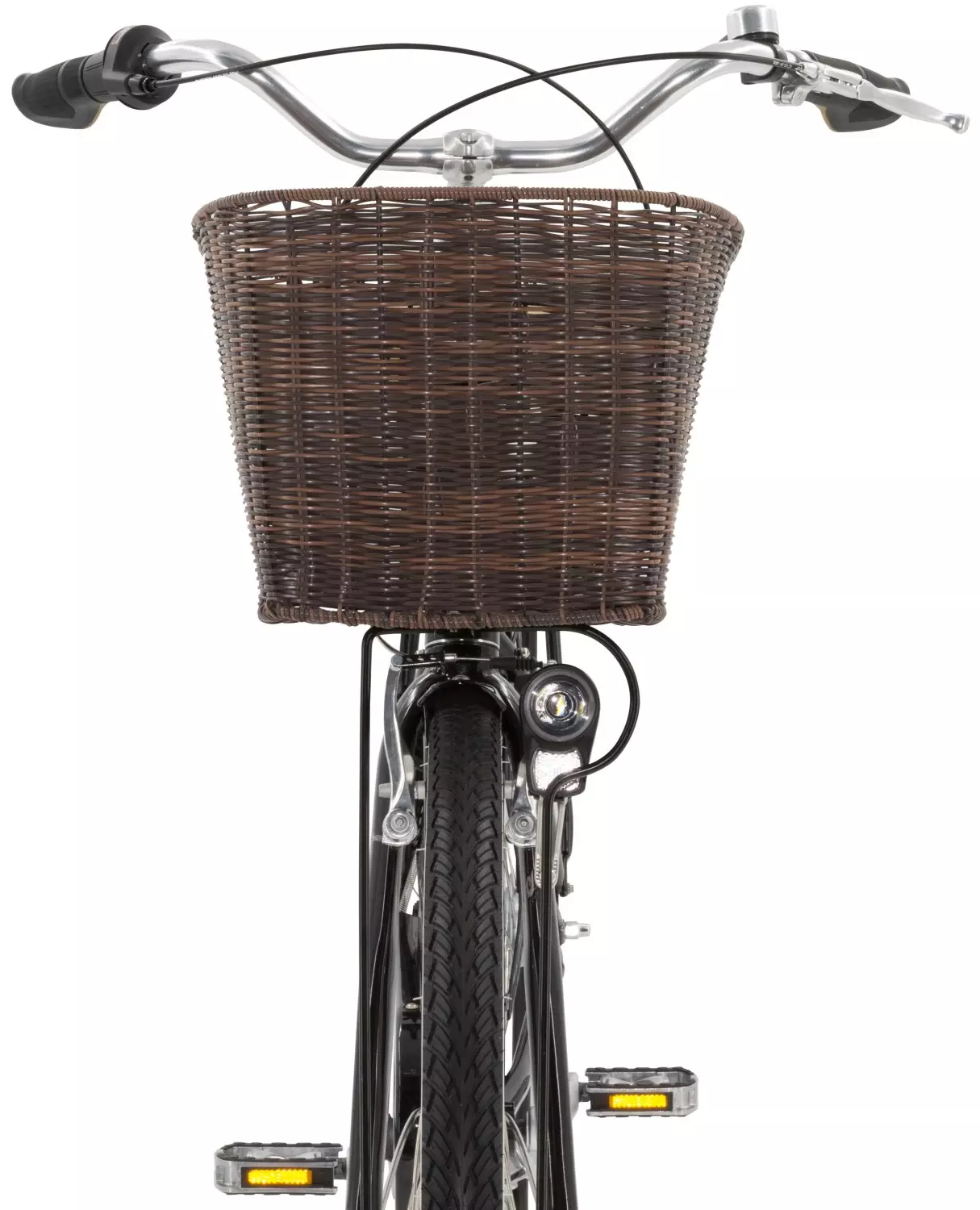 Sykkelen leveres fullt utstyrt med kurv, bagasjebærer med AVS-feste, heldekkende skjermer, lås, lys, kjedebeskytter og kjolenett, som beskytter klærne og gir ekstra trygghet i daglig bruk. AVS-festet gjør det enkelt å klikke av og på kompatibelt tilbehør som kurver, vesker og kasser, raskt og sikkert uten bruk av verktøy. Maks belastning på bagasjebæreren er 25 kg, noe som gir god kapasitet til handling og daglige ærender.