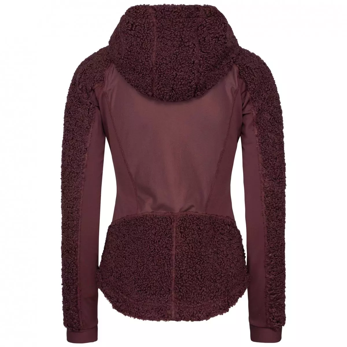 Feminin og sporty pile fleecejakke med hette, varmende og elastiske paneler på side og rygg. Bruk den som et mellomlag ved trening, eller for en sporty hverdagslook til jeans.